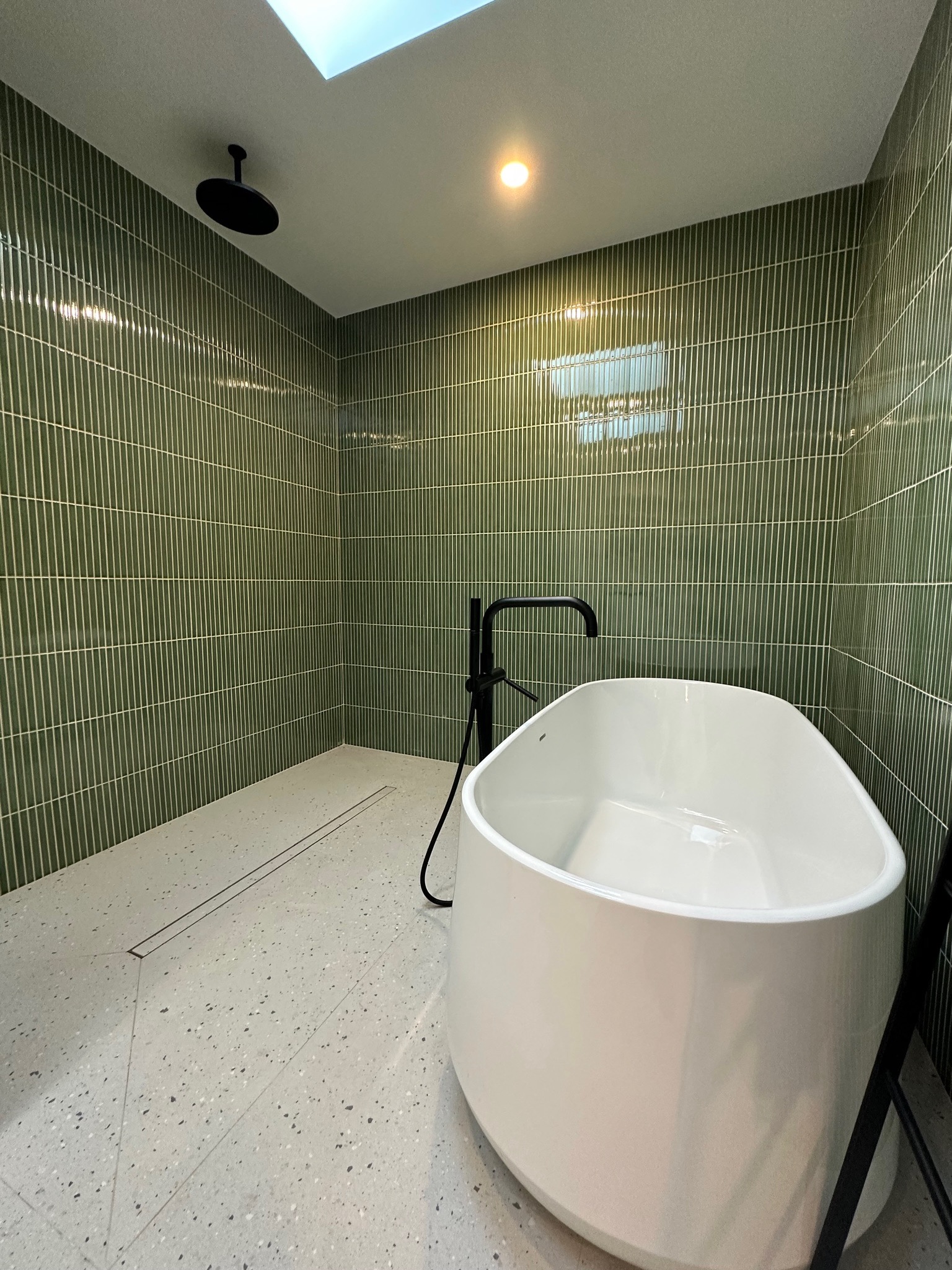 Kitchen and primary bathroom recently renevated. Designed and produced by the owners and featuring custom cabinets, high-end appliances, lightning and tile by designers Ronan & Erwan Bouroullec.